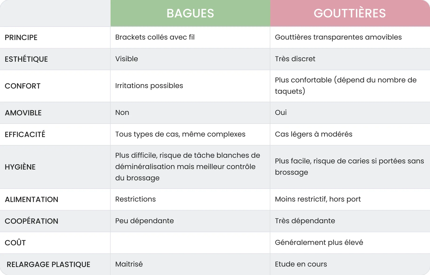 Le choix entre bagues et gouttières repose avant tout sur une évaluation individuelle, tenant compte à la fois de la situation orthodontique et du comportement quotidien de l’adolescent. Cette approche permet de proposer un traitement adapté, réaliste et plus serein pour toute la famille.